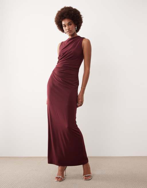 JDY Tall – Bordowa sukienka maxi z ozdobnym marszczeniem
