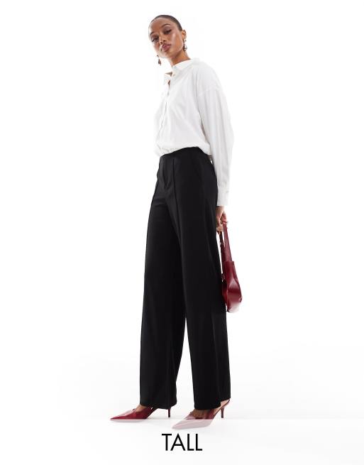 JDY Tall – Czarne spodnie z podwyższonym stanem i ozdobnymi szwami z przodu