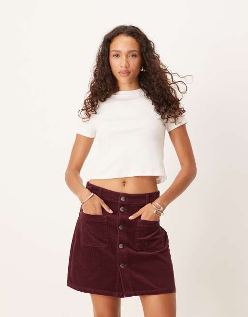 JDY – Bordowa sztruksowa spódnica mini zapinana na guziki
