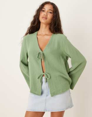 JDY – Ciemnozielona muślinowa koszula wiązana z przodu