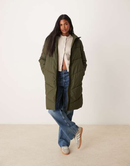 JDY – Ciemnozielony wodoszczelny płaszcz ocieplany o wydłużonym fasonie