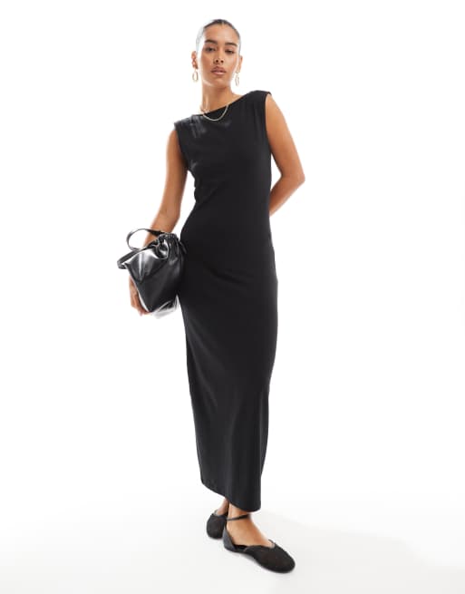 JDY – Czarna sukienka dżersejowa maxi z krótkimi rękawkami