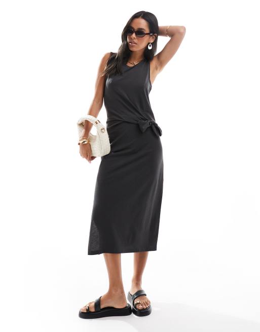 JDY – Czarna sukienka midi bez rękawów z ozdobnym węzłem