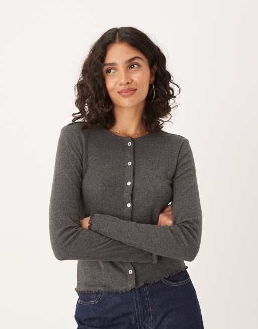 JDY – Grafitowy kardigan z dzianiny pointelle