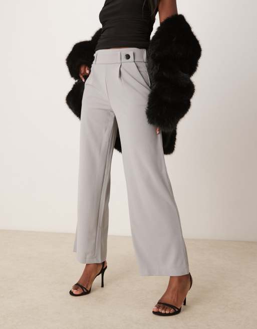 JDY – Jasnoszare spodnie dad fit z szerokimi nogawkami i ozdobnym zapięciem na guzik