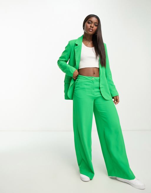 JDY – Jasnozielone spodnie z szerokimi nogawkami i podwyższonym stanem, część zestawu