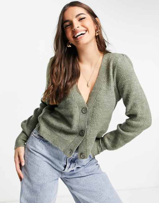 JDY – Kardigan w kolorze khaki z balonowymi rękawami