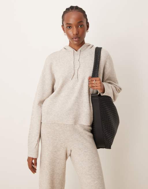JDY – Kremowa luźna bluza dzianinowa z kapturem, część zestawu