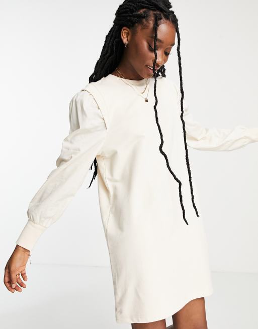 JDY – Kremowa sukienka dresowa z popelinowymi rękawami