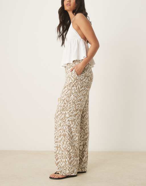 JDY – Spodnie z szerokimi nogawkami w kolorze ecru w abstrakcyjny wzór