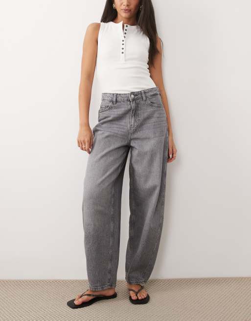 JDY – Susie – Szare jeansy z baryłkowymi nogawkami i średnim stanem