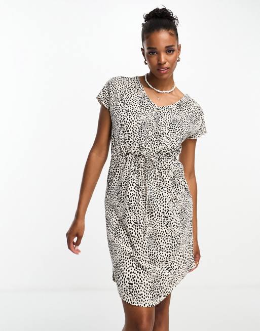 JDY – Szara sukienka mini z dekoltem w szpic we wzór w panterkę