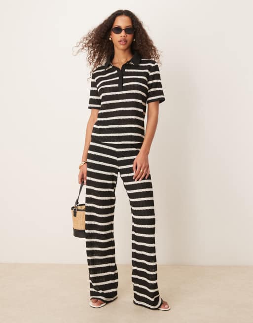 JDY – Szydełkowane spodnie w czarno-białe paski, część zestawu