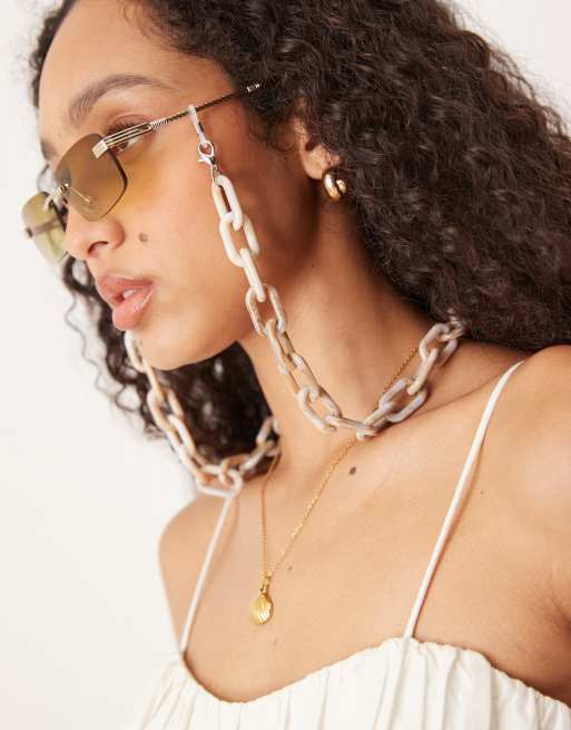 Jeepers Peepers – Kremowy gruby łańcuszek do okularów przeciwsłonecznych z tworzywa