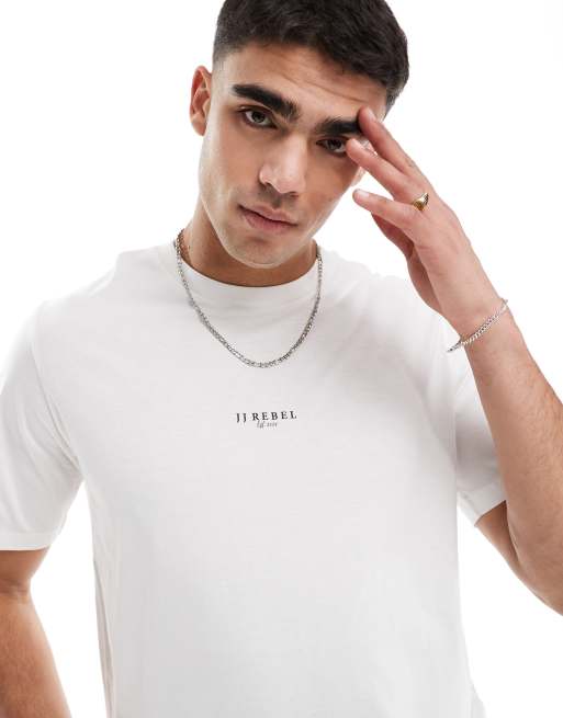 JJ Rebel – Biały T-shirt z nadrukiem logo na piersi