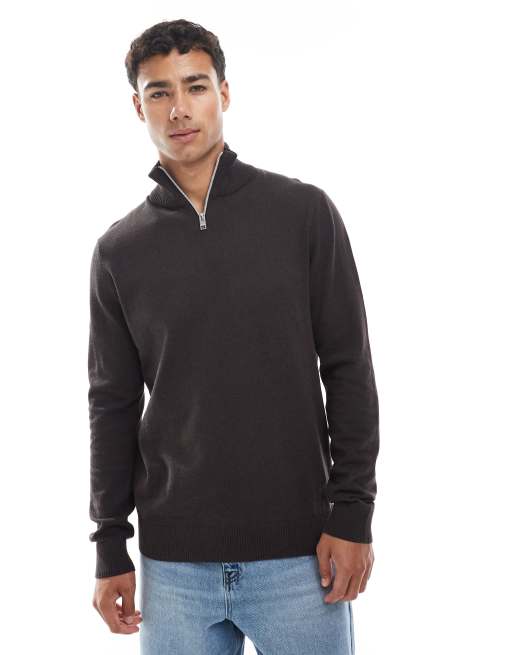 JJ Rebel – Brązowy sweter z zapięciem na suwak pod szyją