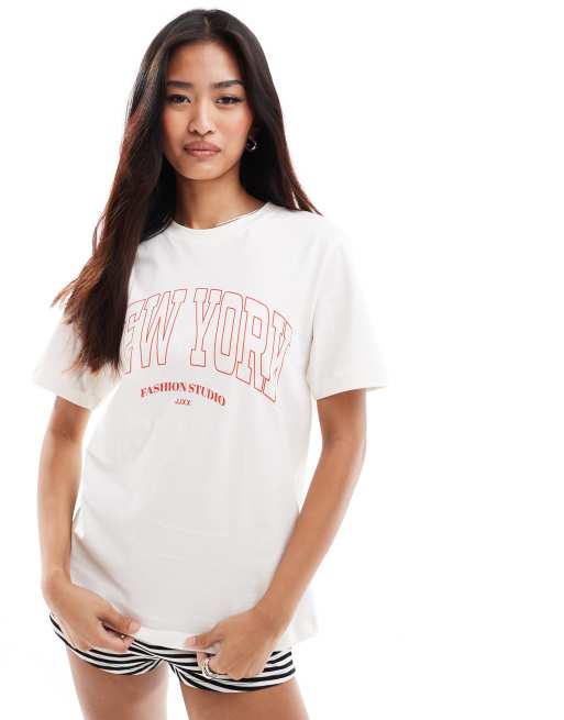 JJXX – Biały T-shirt z nadrukiem „New York” na piersi