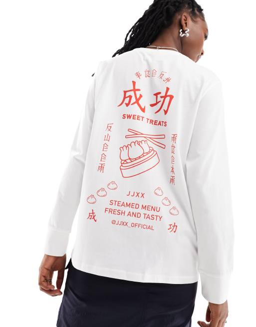 JJXX – Biały T-shirt z nadrukiem z motywem makaronu