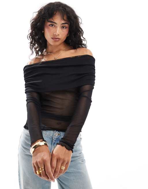 JJXX – Czarny siateczkowy top z odkrytymi ramionami