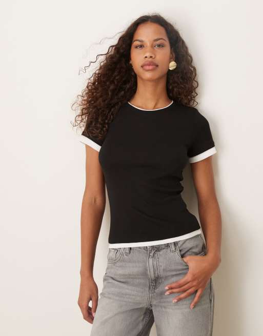 JJXX – Dwuwarstwowy czarny T-shirt z krótkim rękawem