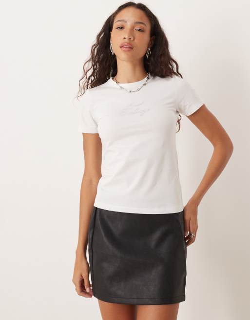 JJXX – Gigi – Biały T-shirt z nadrukiem zdobionym strasami