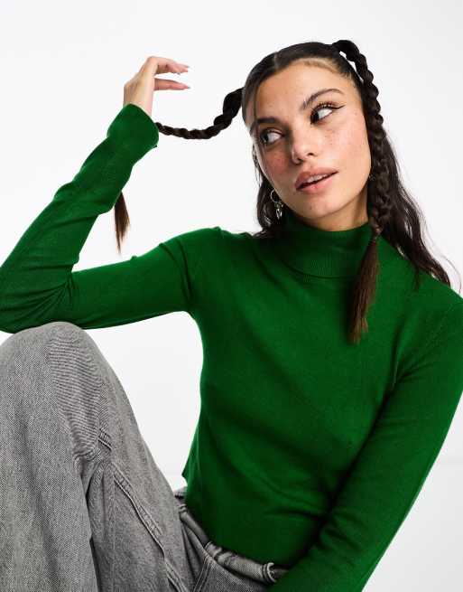JJXX – Jaskrawozielony top z golfem z miękkiej dzianiny
