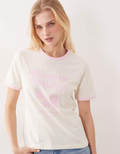 JJXX – Jasnożółty T-shirt z lamówką i nadrukiem