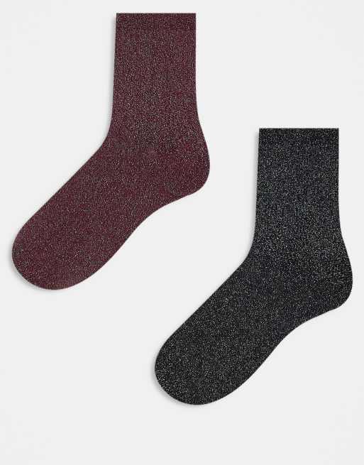 JJXX – Zestaw 2 par brokatowych skarpetek w kolorach bordowym i innych