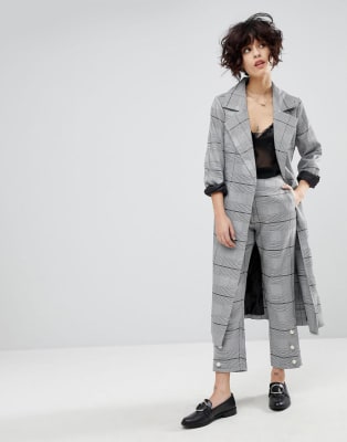 J.O.A – Kopertowa kurtka przeciwdeszczowa i spodnie w garniturową kratę – komplet