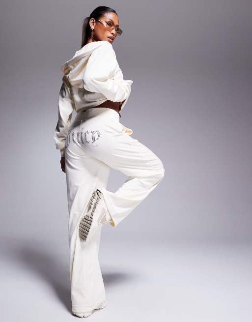 Juicy Couture – Białe welurowe joggersy z szerokimi nogawkami – tylko w ASOS