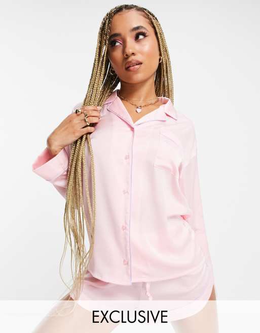 Juicy Couture x ASOS – Różowa satynowa koszula od piżamy oversize – część zestawu
