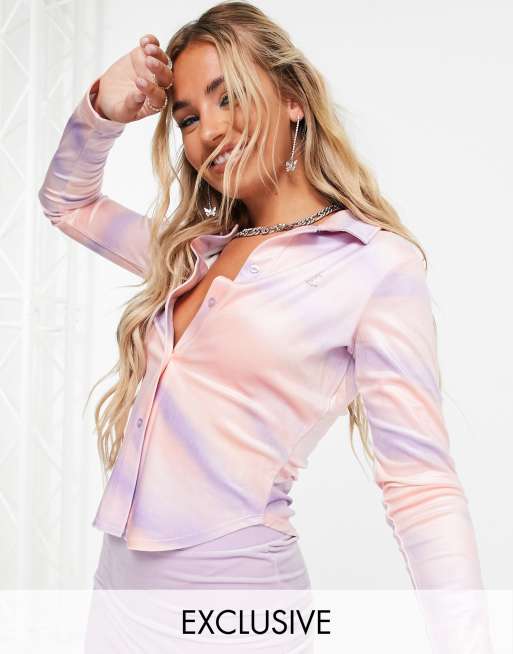 Juicy Couture x ASOS – Różowa welurowa koszula w falisty wzór