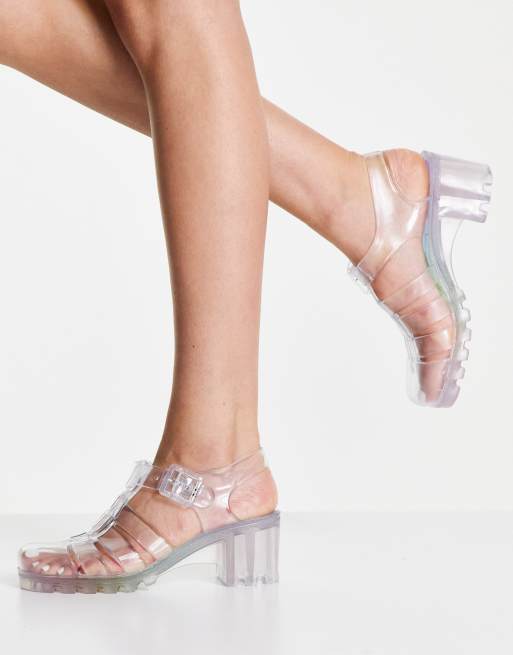 Juju – Przezroczyste żelowe buty na obcasie z tęczowym wykończeniem