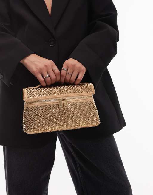 JW PEI – Thea – Jasnozłota zdobiona na całej powierzchni torebka z rączką u góry