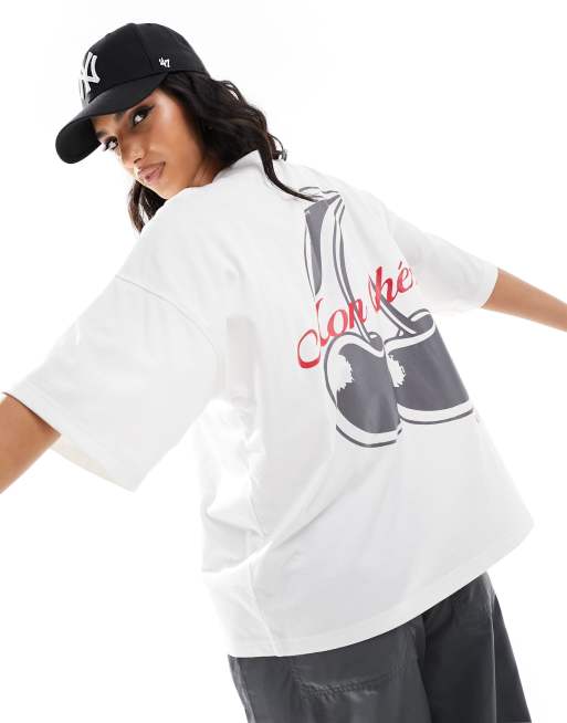 Kaiia – Biały T-shirt oversize z grafiką wiśni na plecach