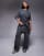 Kaiia – Ciemnoszary zestaw z logo ze strasów: T-shirt oversize, bluza z kapturem i joggersy z szerokimi nogawkami