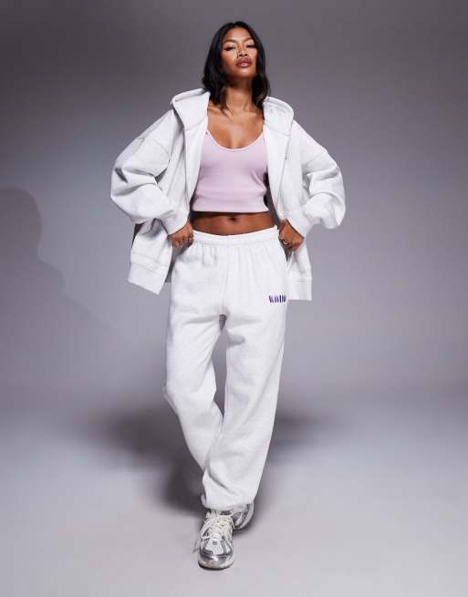 Kaiia – Cotton Rich – Jasnoszare joggersy z haftowanym logo i ściągaczami, część zestawu