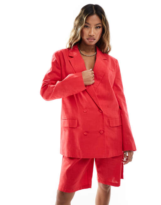 Kaiia – Czerwona elegancka dwurzędowa marynarka oversize o wyglądzie lnu, część zestawu