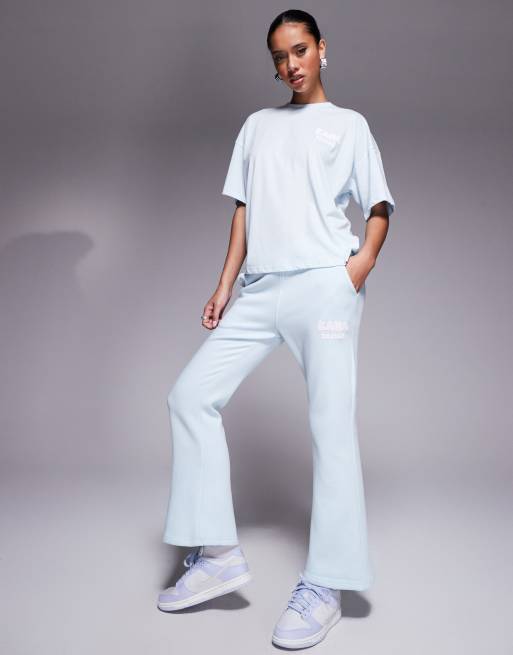 Kaiia – Design – Jasnoniebieskie joggersy z mieszanki bawełny z szerokimi nogawkami i logo, część zestawu