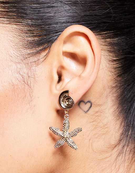 Kaiia Exclusive – Asymetryczne kolczyki w kolorze złota z rozgwiazdą i muszlą