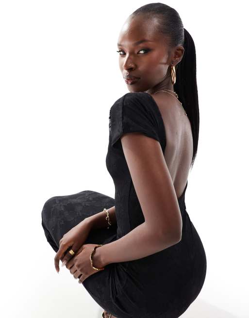 Kaiia Exclusive – Czarna koronkowa sukienka maxi bodycon z obniżonym tyłem i krótkimi rękawkami