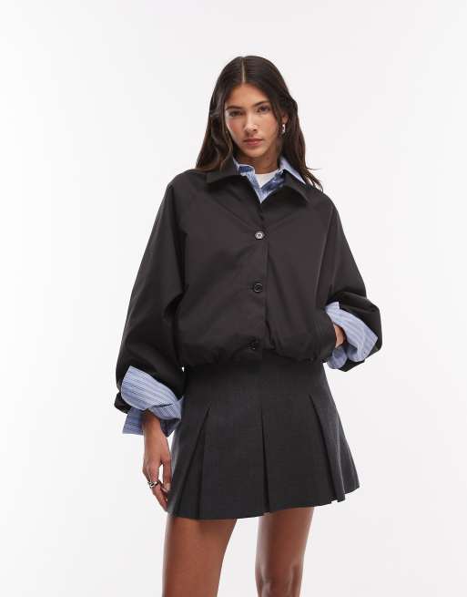 Kaiia Exclusive – Czarna, zapinana na guziki i ściągana na sznurek kurtka z kołnierzykiem