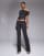 Kaiia Exclusive – Dwuwarstwowy czarno-biały zestaw z siateczki w groszki: top z odsłoniętym ramieniem i spodnie z wywijanym marszczonym stanem