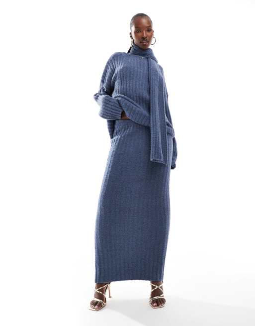 Kaiia Exclusive – Niebieska przylegająca spódnica kolumnowa maxi z dzianiny boucle, część zestawu
