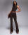 Kaiia Exclusive – Zestaw w kolorze czekoladowym: top z prostym dekoltem oraz przylegające spodnie z rozszerzanymi nogawkami i wywijaną, dwuwarstwową talią