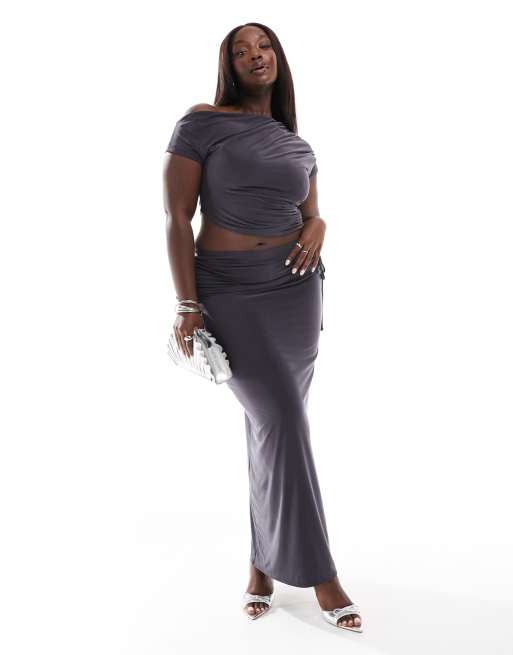 Kaiia Plus – Grafitowy zestaw: top z odkrytymi ramionami i spódnic maxi