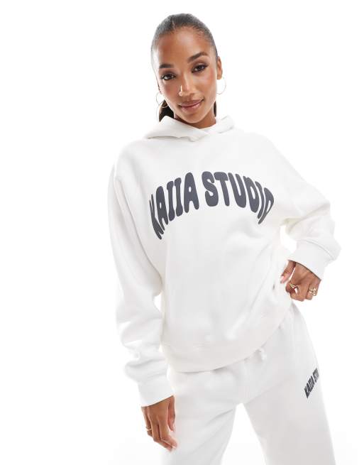Kaiia Studio – Bluza z kapturem oversize z mieszanki bawełny w kolorze ecru z logo, część zestawu