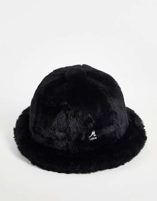 Kangol – Czarny kapelusz typu bucket ze sztucznego futerka