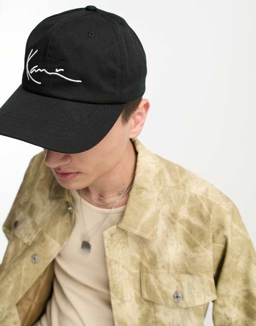 Karl Kani – Czarna baseballowa czapka z daszkiem i sygnowanym logo