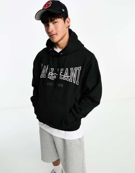 Karl Kani – Gruba czarna bluza oversize z kapturem i logo w uczelnianym stylu, część zestawu